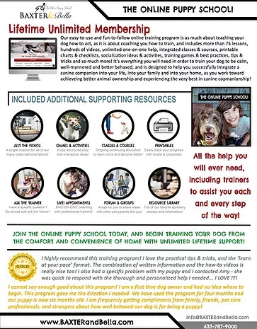 ​”I highly recommend Baxter & Bella to every dog owner! I am a first time dog owner, but the resources are excellent for any dog owner at any age. When we got our Cavapoo puppy we decided to enroll at the local pet store for training classes. The classes were good, but Baxter & Bella has been so much better!! The curriculum is both more in-depth and broad. We also considered hiring a personal dog trainer, but Baxter & Bella is much more affordable, long-term, and based on my schedule. I love the videos because I can watch them over again by myself or with my children. You can’t do that at the pet store. The LIVE! Office hours were amazing! I asked all my individualized questions and received answers and encouragement I needed, including links to her videos. The range of services available is excellent, for times when I want to go in-depth or when I need a quick answer using the Search feature. I feel 100% supported in training my puppy now and for years to come. I do not think I could receive better service anywhere else. Thank you!” ~ Melanie