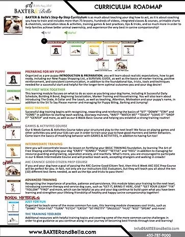 After turning my interest into a profession, families started contacting me to train their dogs for them, which set me on an ongoing adventure of seeking education and professional development in the dog training world. As I enjoyed the books, the classes, the mentors and of course, the teaching and the training time with the animals, I absolutely loved the learning and the implementing of it all by helping others. Through it all, I considered how I could have an even bigger influence for good and wanted to be able to send home resources and materials with every trained dog I worked with in order for the family to continue the training that had been taught and understand more completely the education their puppy received while in my care. I subsequently created the BAXTER & Bella company with hopes of sharing my training knowledge with as many new puppy parents as possible. Today, with a business that is growing and a commitment to continue forward, I am dedicated to providing the most current, up-to-date and impactful resources, tips, tricks, tools and techniques that are as much about teaching family pets how to appropriately act, as they are about coaching pet parents how to effectively train. In fact, here at BAXTER & Bella it’s part of our DNA and will always be be who we are… successfully building positive and respective relationships with our animals as we continue to work toward becoming best friends through love and learning!